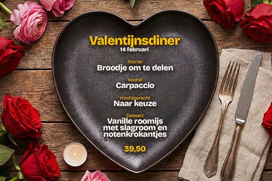 Liefde gaat door de maag… en daar helpen wij graag een handje bij. Geniet samen van ons speciale Valentijnsmenu voor €39,50 p.p.