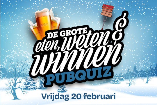 VRIJDAG 20 FEBRUARI - gaan we weer live quizzen, bij de Eten, Weten en Winnen Pubquiz in Café de Heeren!