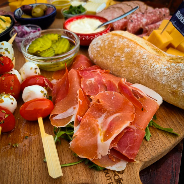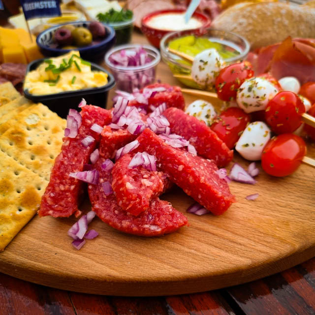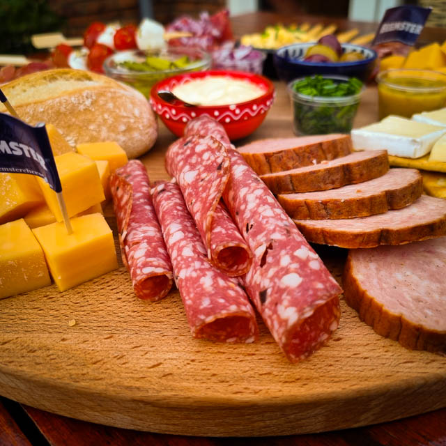 Lekker voor bij de TV of de borrel, tijdens Oud & Nieuw. Deze borrelplank is al jaren een graag geziene gast bij mensen thuis, mede omdat wij alleen maar gebruik maken van verse producten, het liefst uit de regio. Wij gebruiken bijvoorbeeld alleen maar kaas van Beemster, en de overige producten komen van lokale winkels en slagers. Probeer hem ook eens, hij is verkrijgbaar voor een groep van 6 personen!