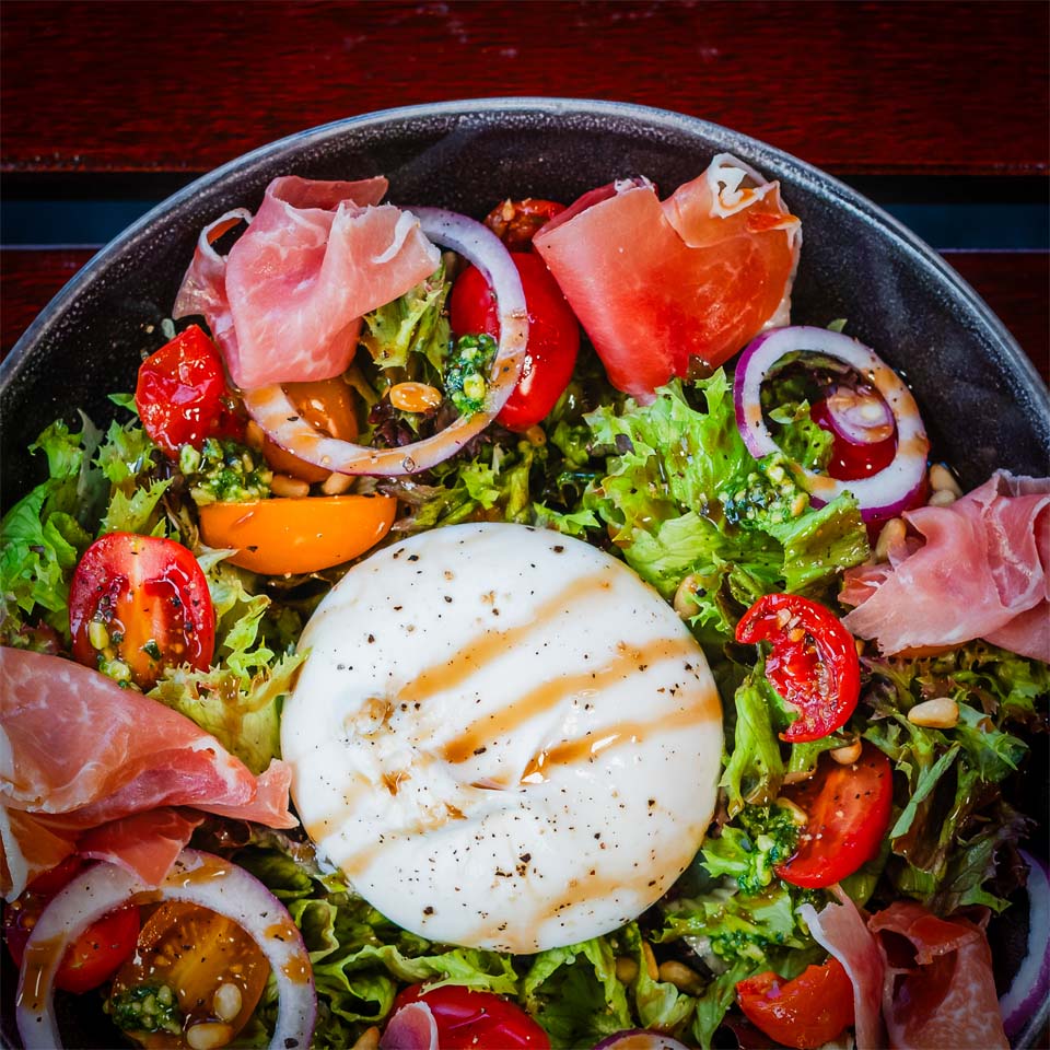 Wat dacht je van een overheerlijke maaltijdsalade, zoals de Burrata salade of een Griekse salade. Maar uietaard hebben we niet alleen salades, ook onze pastagerechten, zoals de pasta met truffelsaus en de pasta aglio e olio zijn als extra lekker als vegetarische variatie beschikbaar. Zelfs onze Italiaanse burger en de schnitzel hebben we in een vega variant.
